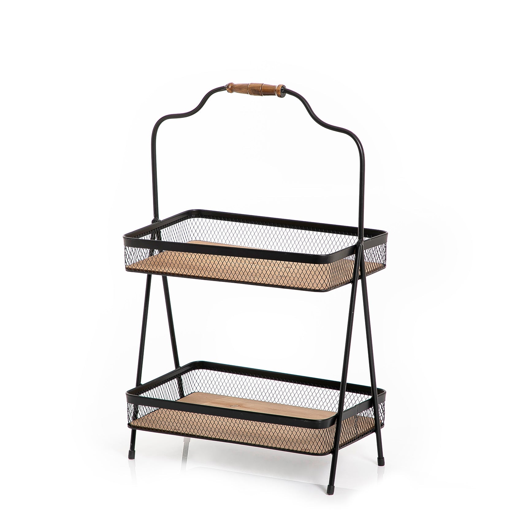 Stand with 2 trays made from metal and wood