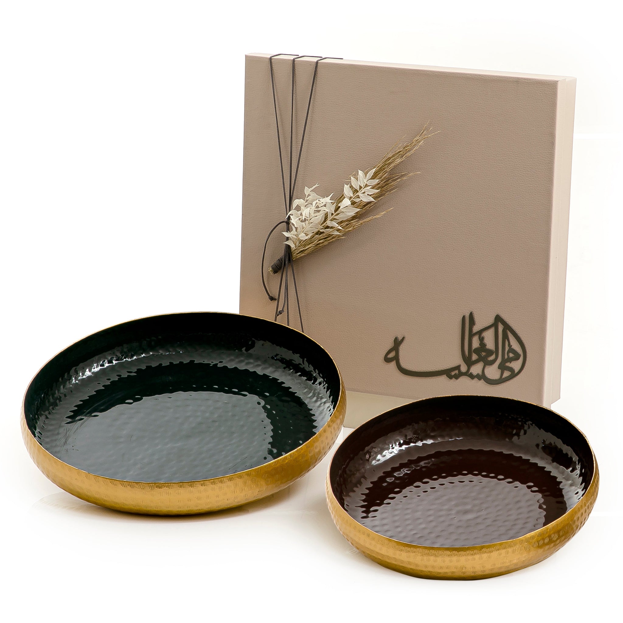 A beautiful and versatile set of 2 plates made of metal makes a worthy acquisition for your modern living space, included with a luxury box can be used as an elegant gift for the mother’s day