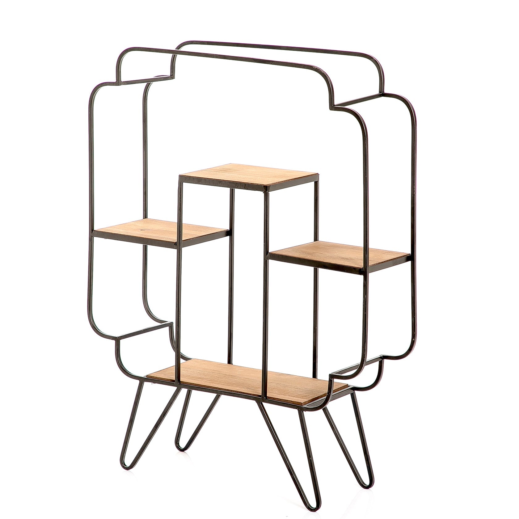 An Elegant Decorative Stand Crafted From Black Metallic Base And Four Wooden Shelves Which Is Ideal For Placing Decor Items.