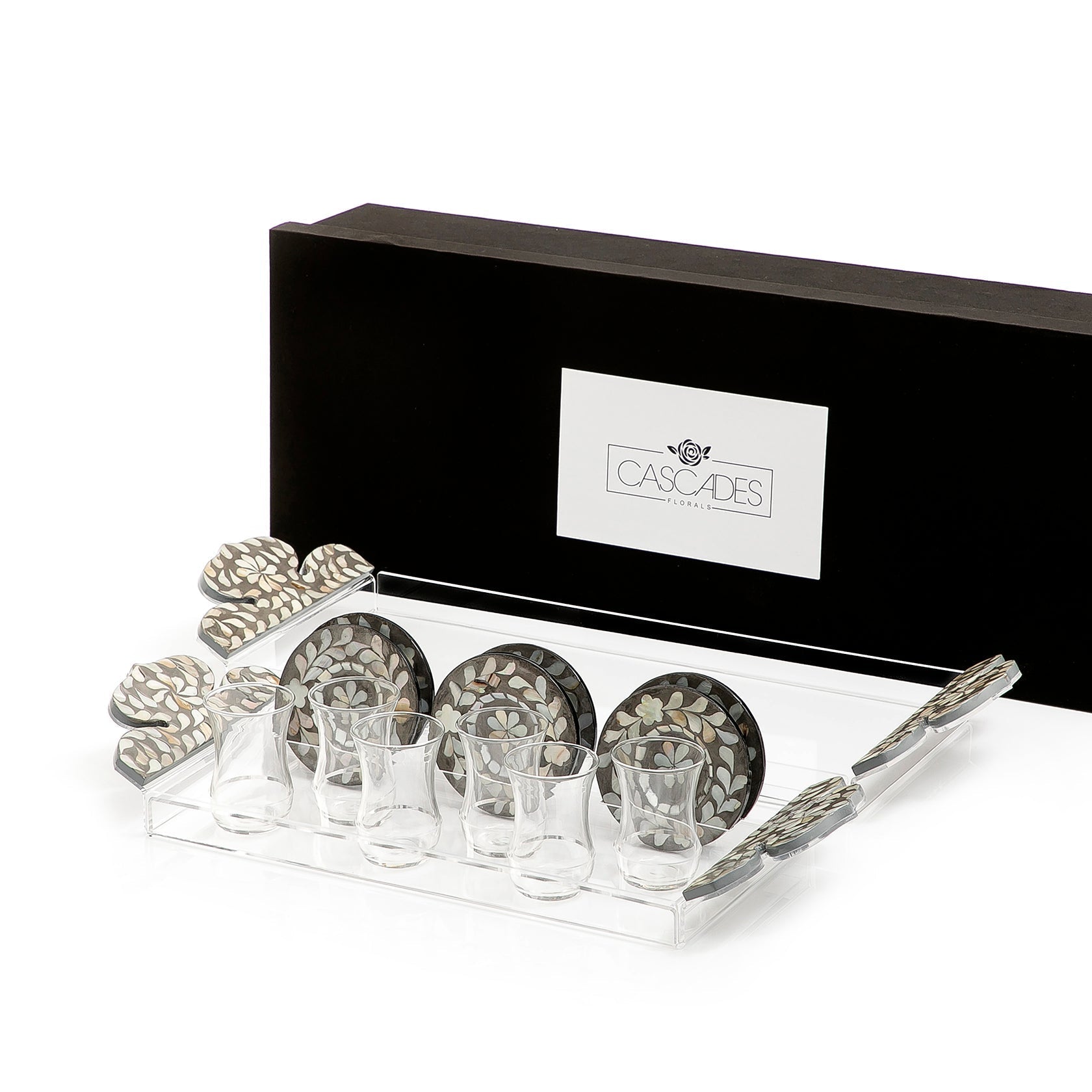 Set of 2 acrylic trays with M.O.P coasters and glasses