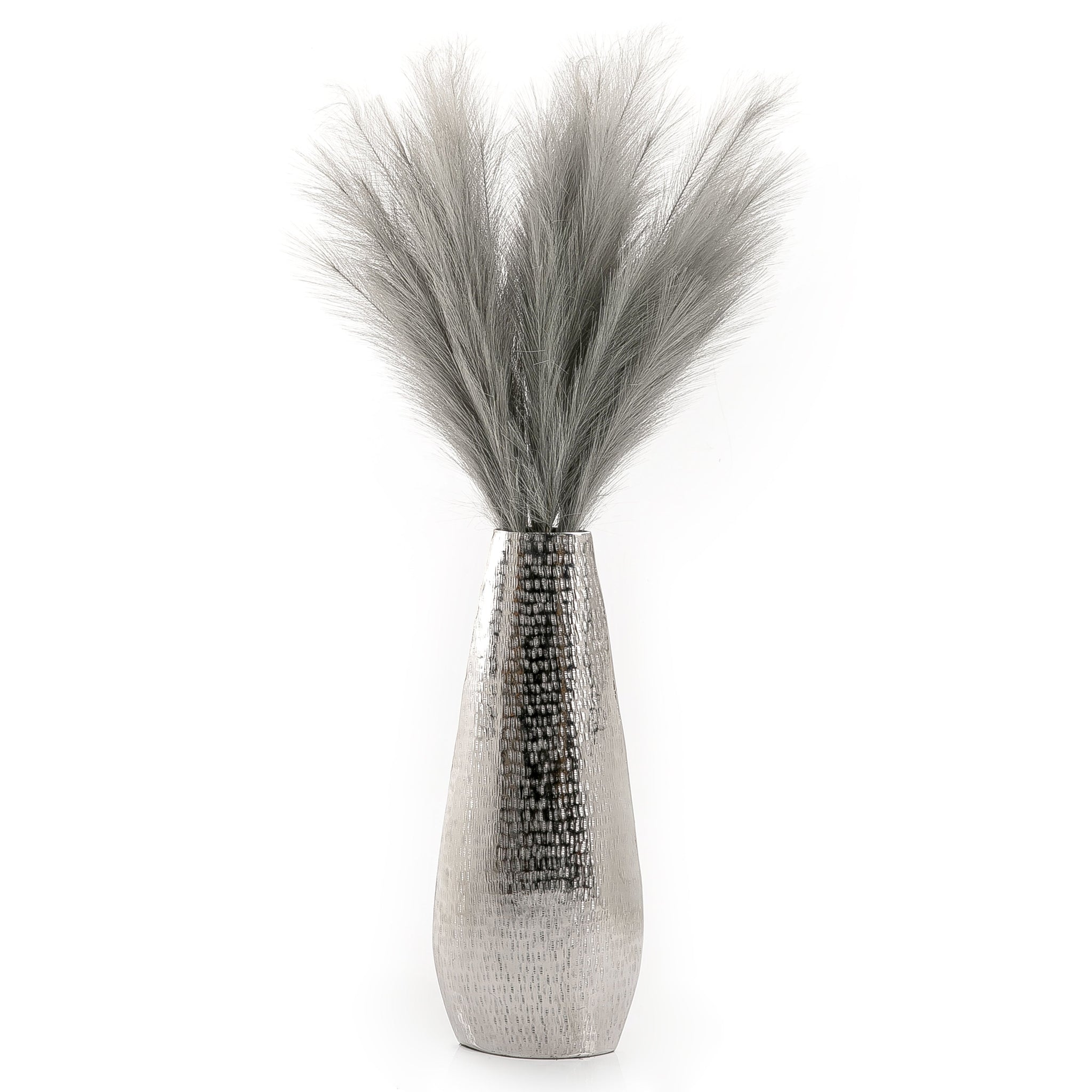 Silver Metal Vase Decorated With Reesh .