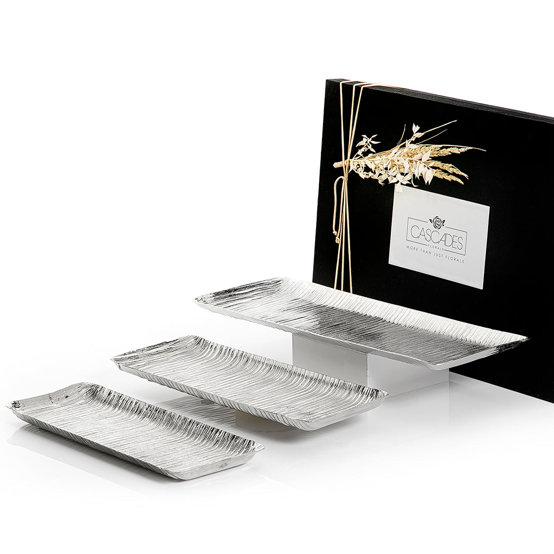 An Elegant Silver Set Of Three Trays Made Of Metal With Gift Box.