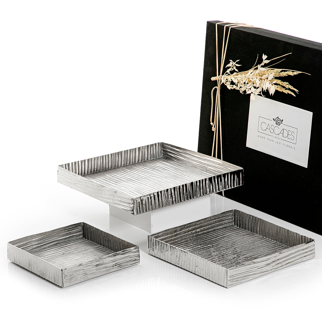 An Elegant Silver Set Of Three Trays Made Of Metal With Gift Box.