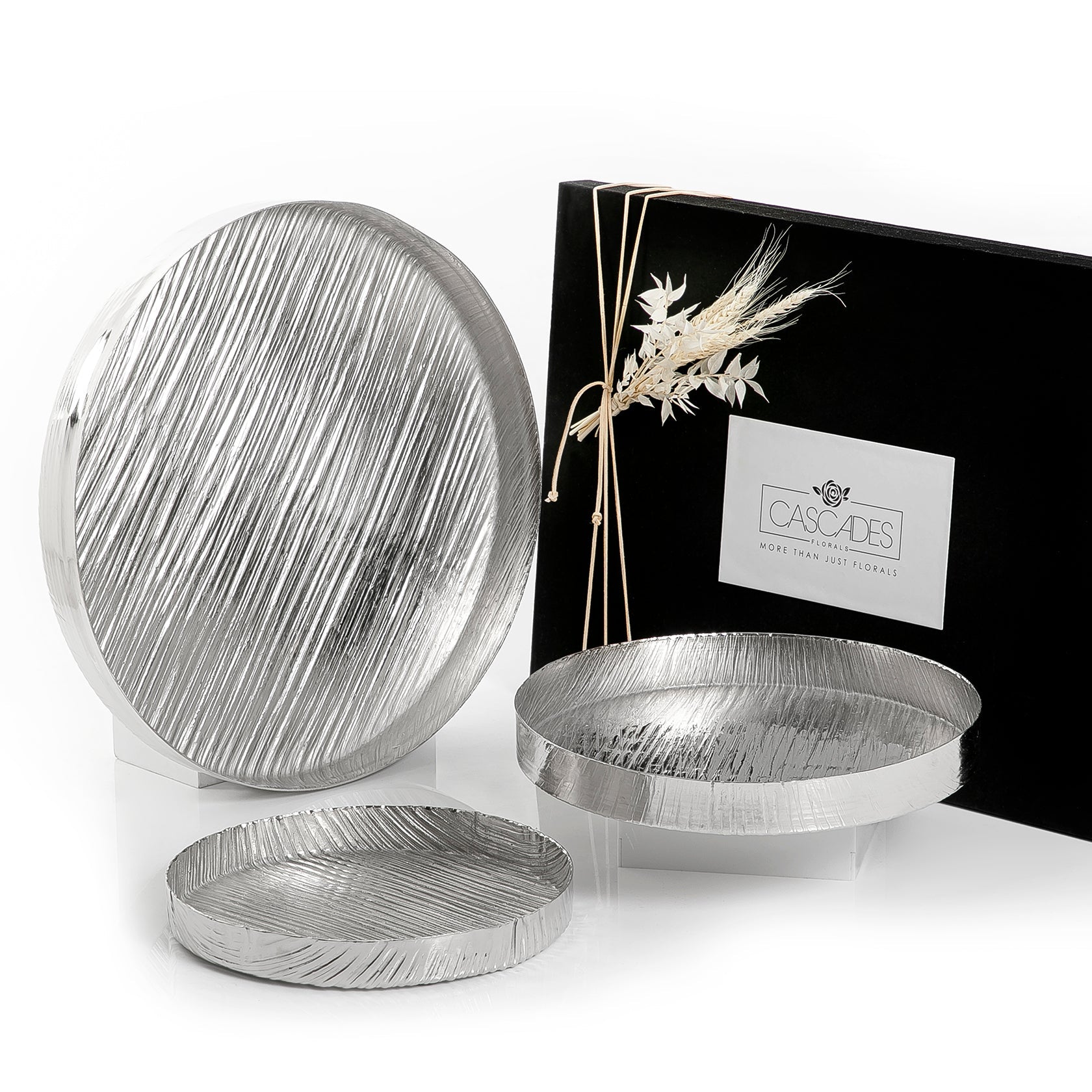 Silver Set Of Three Trays Made Of Metal With Gift Box.