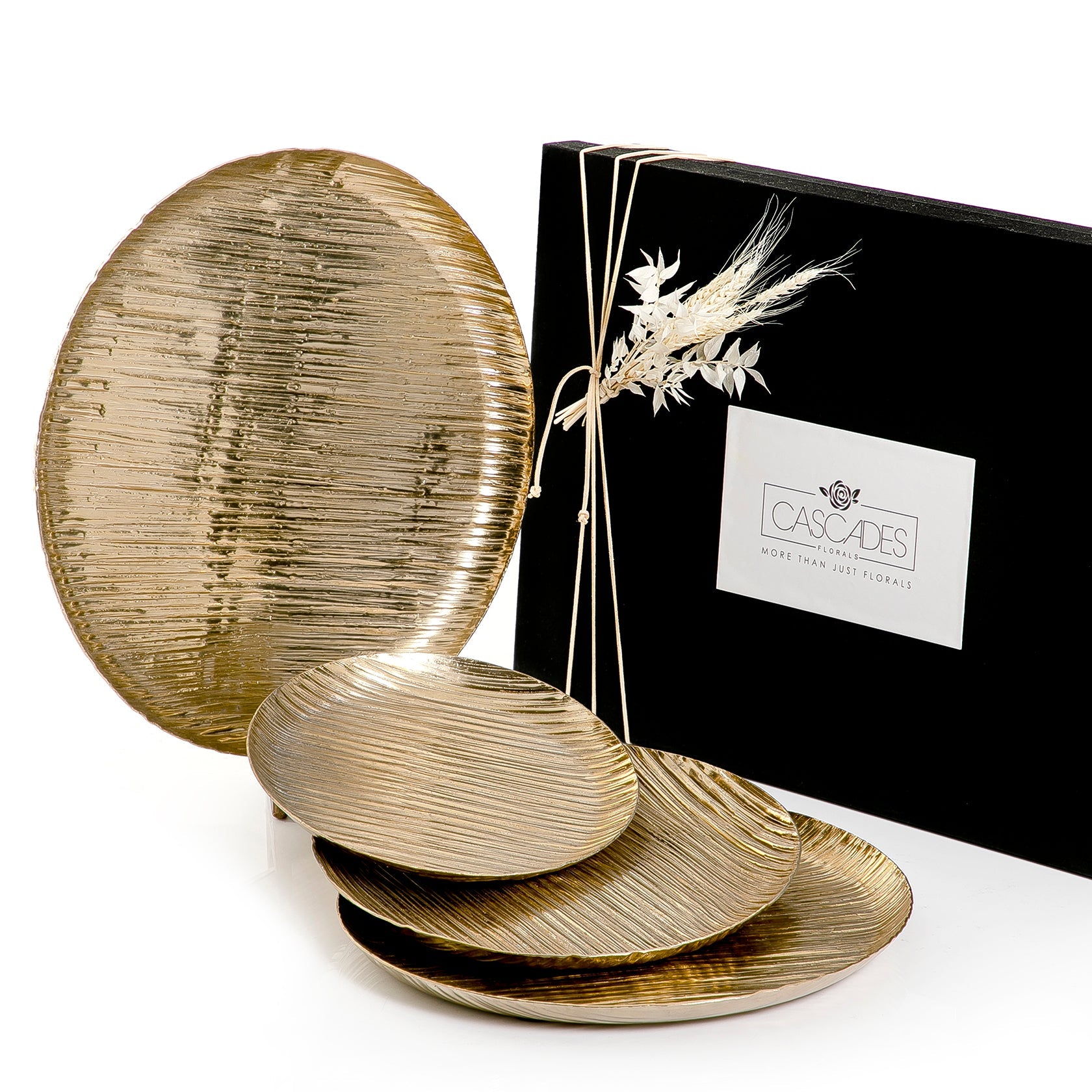 Golden Set Of Four Trays Made Of Metal With Gift Box.